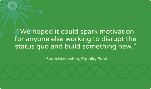 “We had been receiving questions from partners, funders, and others about how we created the Equality Fund, and we realized that our origin story didn’t live anywhere. As we reached a key milestone in the Equality Fund’s journey, we wanted to capture our origin story for documentation, inspiration for the next five years, and accountability – an important role for an annual report. We also kept in mind that beyond sharing insights and lessons, we hoped it could spark motivation for anyone else working to disrupt the status quo and build something new.