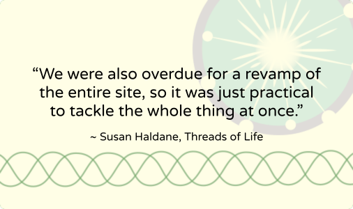 Website content (strategy + writing): interview with Susan Haldane of Threads of Life