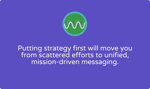 So, what does it mean to “put strategy first?” Because my work with nonprofit communicators centres around messaging and content, strategic nonprofit communications means looking at the following: